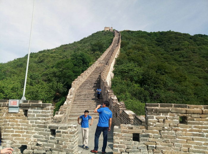 早晨,晴空萬里,陽光明媚,我們一大早就出發(fā)趕往我們的目的地——萬里長城慕田峪段,經(jīng)過一個小時的奔波,我們來到了慕田峪。六月的北京雖已是炎炎熱日,但登長城的小伙伴們依舊情緒高昂,熱情不減。