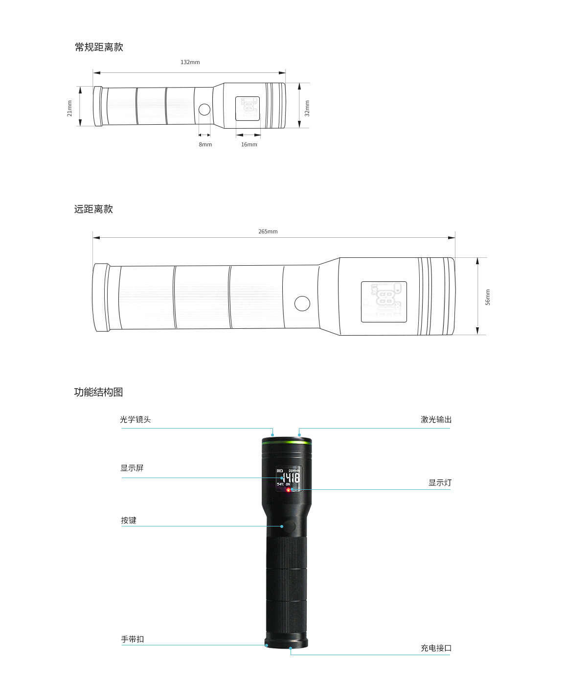 檢測激光ClassI;指示激光ClassiⅡ |