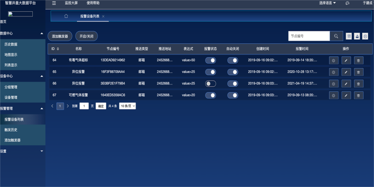 產(chǎn)品描述:智慧氣體監(jiān)測安全云平臺以設(shè)備為核心,管理設(shè)備數(shù)據(jù);支持多種設(shè)備傳輸協(xié)議,展示設(shè)備的實時數(shù)據(jù)和設(shè)備狀態(tài);可快捷靈活的設(shè)置設(shè)備告警規(guī)則,設(shè)備告警后可通過多種方式快速發(fā)送報警通知,讓用戶第一時間收到報警信息,快速做出應(yīng)對;基于強(qiáng)大的數(shù)據(jù)管理,用戶可快捷方便的對本平臺的實時數(shù)據(jù),歷史數(shù)據(jù)等進(jìn)行查看和分析,也支持通過設(shè)置第三方數(shù)據(jù)推送和openApi方式進(jìn)行平臺的應(yīng)用擴(kuò)展;